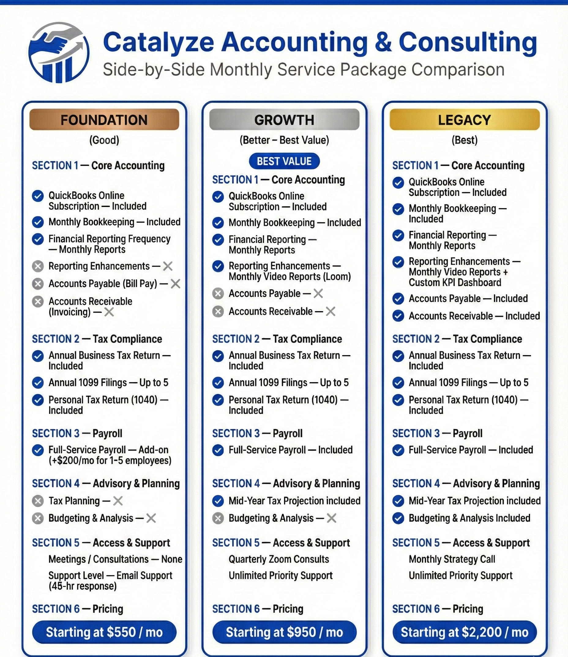 From bookkeeping to tax filing, our services are designed to give small business owners clarity, confidence, and more time to focus on growth.